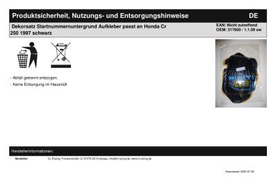 | Titel: | Dekorsatz Startnummernuntergrund Aufkleber passt an Honda Cr 250 1997 schwarz |