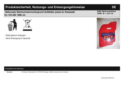 | Titel: | Dekorsatz Startnummernuntergrund Aufkleber passt an Kawasaki Kx 125 250 1996 rot |
