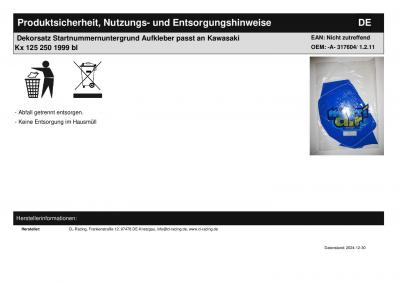 | Titel: | Dekorsatz Startnummernuntergrund Aufkleber passt an Kawasaki Kx 125 250 1999 bl |