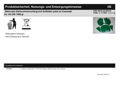 | Titel: | Dekorsatz Startnummernuntergrund Aufkleber passt an Kawasaki Kx 125 250 1999 gr |