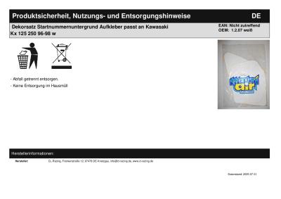 | Titel: | Dekorsatz Startnummernuntergrund Aufkleber passt an Kawasaki Kx 125 250 96-98 w |