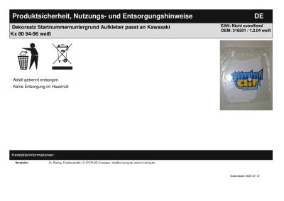| Titel: | Dekorsatz Startnummernuntergrund Aufkleber passt an Kawasaki Kx 80 94-96 weiß |