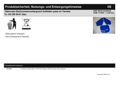 | Titel: | Dekorsatz Startnummernuntergrund Aufkleber passt an Yamaha Yz 125 250 00-01 blau |