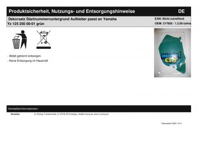 | Titel: | Dekorsatz Startnummernuntergrund Aufkleber passt an Yamaha Yz 125 250 00-01 grün |