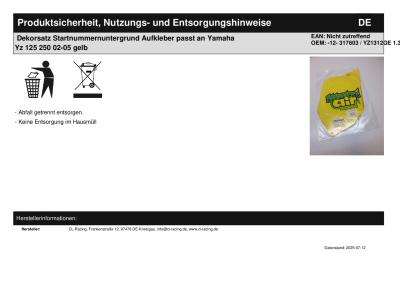 | Titel: | Dekorsatz Startnummernuntergrund Aufkleber passt an Yamaha Yz 125 250 02-05 gelb |