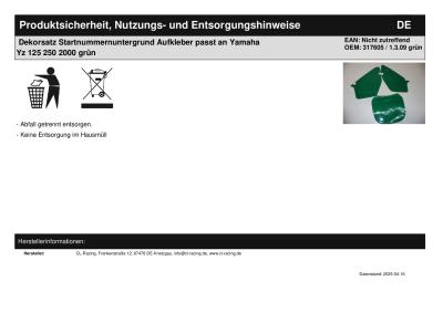 | Titel: | Dekorsatz Startnummernuntergrund Aufkleber passt an Yamaha Yz 125 250 2000 grün |