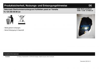| Titel: | Dekorsatz Startnummernuntergrund Aufkleber passt an Yamaha Yz 125 250 96-99 sw |
