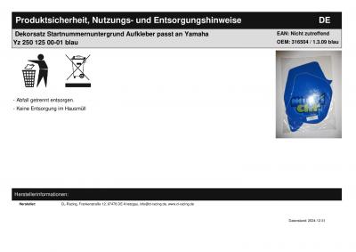 | Titel: | Dekorsatz Startnummernuntergrund Aufkleber passt an Yamaha Yz 250 125 00-01 blau |