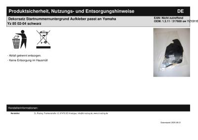 | Titel: | Dekorsatz Startnummernuntergrund Aufkleber passt an Yamaha Yz 85 02-04 schwarz |