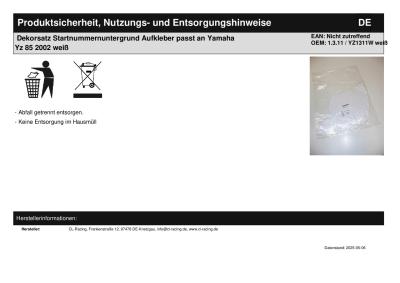 | Titel: | Dekorsatz Startnummernuntergrund Aufkleber passt an Yamaha Yz 85 2002 weiß |