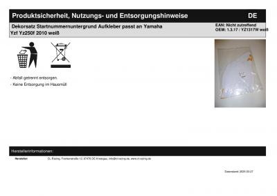 | Titel: | Dekorsatz Startnummernuntergrund Aufkleber passt an Yamaha Yzf Yz250f 2010 weiß |