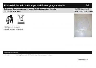 | Titel: | Dekorsatz Startnummernuntergrund Aufkleber passt an Yamaha Yzf Yz450f 2010 weiß |