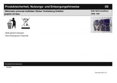 | Titel: | Dekorsatz universal Aufkleber Sticker Verkleidung Emblem graphic kit blau |