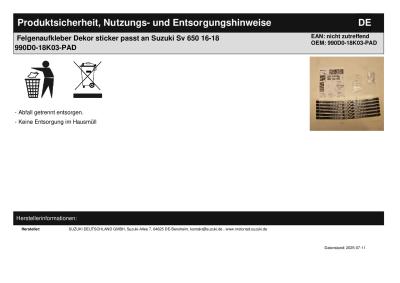 Felgenaufkleber Dekor sticker passt an Suzuki Sv 650 16-18 990D0-18K03-PAD