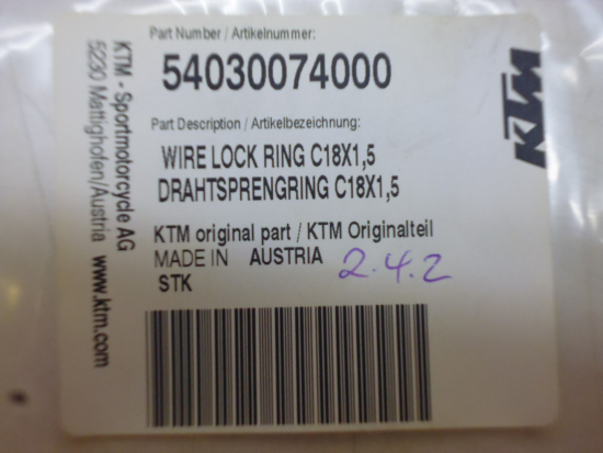 Drahtsprengring C18x1,5 clip wire lock ring passt an Ktm 540.30.074.000