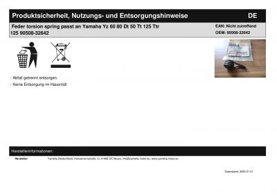 Feder torsion spring passt an Yamaha Yz 60 80 Dt 50 Tt 125 Ttr 125 90508-32642