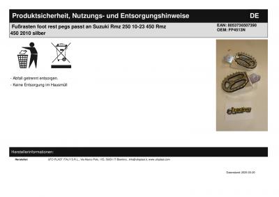 Titel: | Fußrasten foot rest pegs passt an Suzuki Rmz 250 10-23 450 Rmz 450 2010 silber |