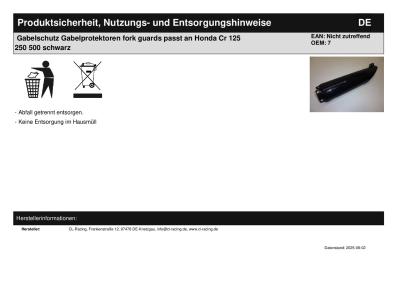 Titel: | Gabelschutz Gabelprotektoren fork guards passt an Honda Cr 125 250 500 schwarz |