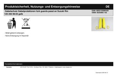 Titel: | Gabelschutz Gabelprotektoren fork guards passt an Suzuki Rm 125 250 99-03 gelb |