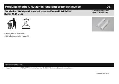 Titel: | Gabelschutz Gabelprotektoren fork passt an Kawasaki Kxf Kx250f Kx450f 09-25 weiß |