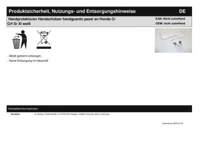 Titel: | Handprotektoren Handschützer handguards passt an Honda Cr Crf Xr Xl weiß |