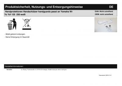 | Titel: | Handprotektoren Handschützer handguards passt an Yamaha Wr Yz Yzf 125 250 weiß |