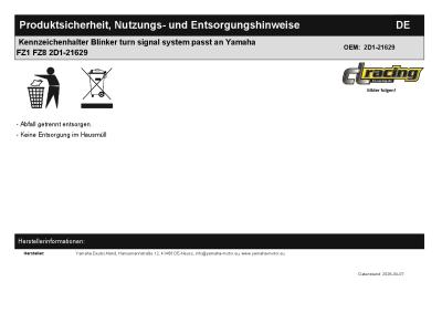 | Titel: | Kennzeichenhalter Blinker turn signal system passt an Yamaha FZ1 FZ8 2D1-21629 |