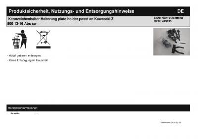 | Titel: | Kennzeichenhalter Halterung plate holder passt an Kawasaki Z 800 13-16 Abs sw |