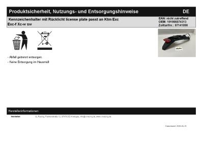 | Titel: | Kennzeichenhalter mit Rücklicht license plate passt an Ktm Exc Exc-f Xc-w sw |