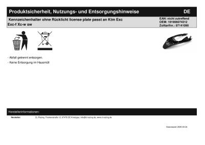 | Titel: | Kennzeichenhalter ohne Rücklicht license plate passt an Ktm Exc Exc-f Xc-w sw |