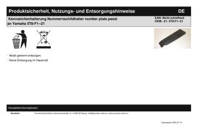 Kennzeichenhalterung Nummernschildhalter number plate passt an Yamaha 5T8-F1--21