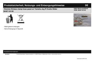 Titel: | Klemme Einlass clamp hose passt an Yamaha Jog R Ovetto Slider 90467-24140 |