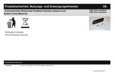 Titel: | Krümmerschutz Hitzeschutz Protektor Krümmer exhaust cover Enduro Cross Motorrad |