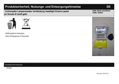 Titel: | Lichtmaske Lampenmaske Verkleidung headlight Enduro passt an Honda Xl weiß-gelb |