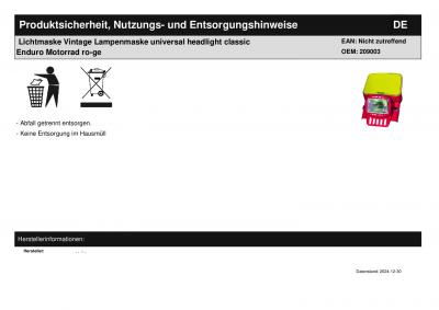Titel: | Lichtmaske Vintage Lampenmaske universal headlight classic Enduro Motorrad ro-ge |