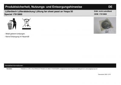 Titel: | Lüfterblech Lüfterabdeckung Lüftung fan sheet passt an Vespa 50 Special 17913800 |