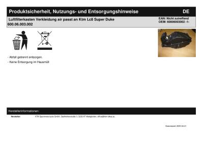 Titel: | Luftfilterkasten Verkleidung air passt an Ktm Lc8 Super Duke 600.06.003.002 |