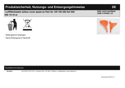 Titel: | Luftfilterkasten airbox cover passt an Ktm Sx 125 150 250 Sxf 350 450 13-15 or |