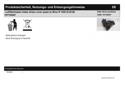 Titel: | Luftfilterkasten intake airbox cover passt an Bmw R 1200 St 05-08 767765507 |