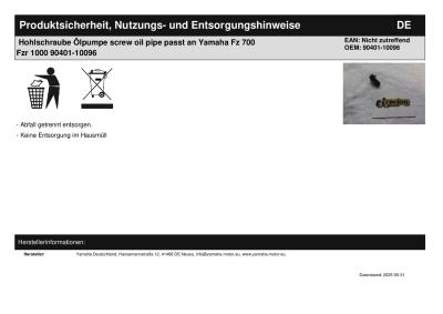 Titel: | Hohlschraube Ölpumpe screw oil pipe passt an Yamaha Fz 700 Fzr 1000 90401-10096 |