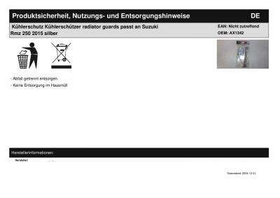 Titel: | Kühlerschutz Kühlerschützer radiator guards passt an Suzuki Rmz 250 2015 silber |