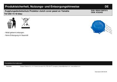 Titel: | Kupplungsdeckelschutz Protektor clutch cover passt an Yamaha Yzf 250 14-18 blau |