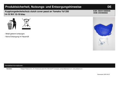 Titel: | Kupplungsdeckelschutz clutch cover passt an Yamaha Yzf 250 14-19 Wrf 15-19 blau |