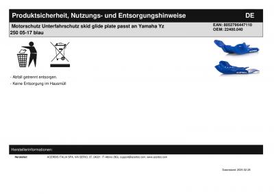 | Titel: | Motorschutz Unterfahrschutz skid glide plate passt an Yamaha Yz 250 05-25 bl |