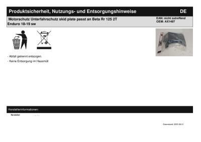 Titel: | Motorschutz Unterfahrschutz skid plate passt an Beta Rr 125 2T Enduro 18-19 sw |