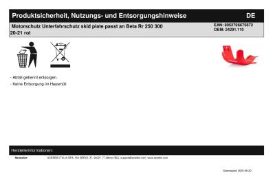 Titel: | Motorschutz Unterfahrschutz skid plate passt an Beta Rr 250 300 20-21 rot |