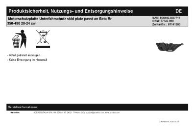 | Titel: | Motorschutzplatte Unterfahrschutz skid plate passt an Beta Rr 350-480 20-24 sw |