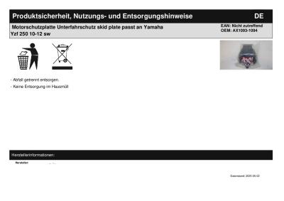 Titel: | Motorschutzplatte Unterfahrschutz skid plate passt an Yamaha Yzf 250 10-12 sw |