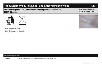 Titel: | Motorschutzplatte Zeta Unterfahrschutz skid passt an Yamaha Yzf 250 07-09 silber |