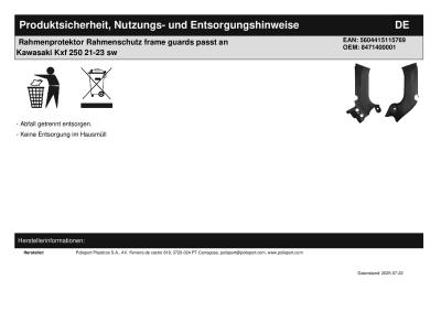 Titel: | Rahmenprotektor Rahmenschutz frame guards passt an Kawasaki Kxf 250 21-24 sw |
